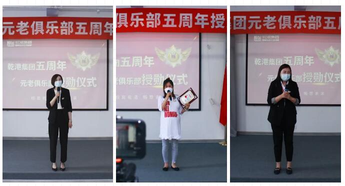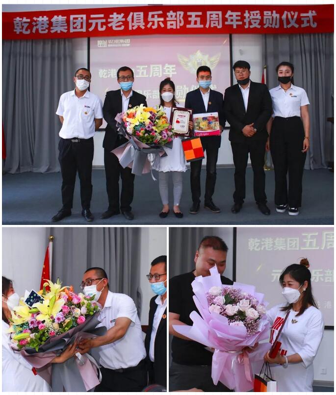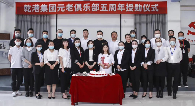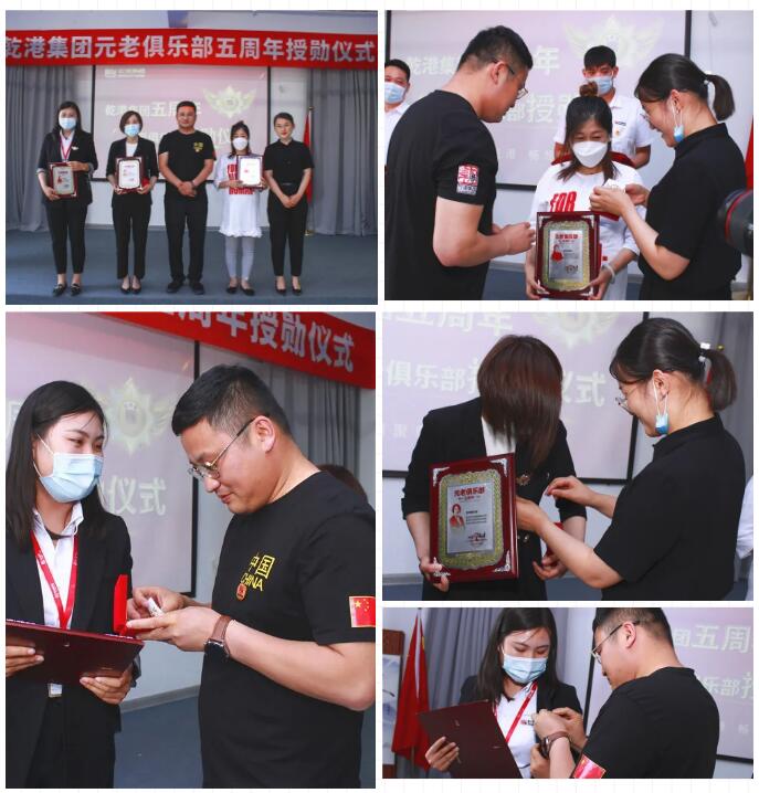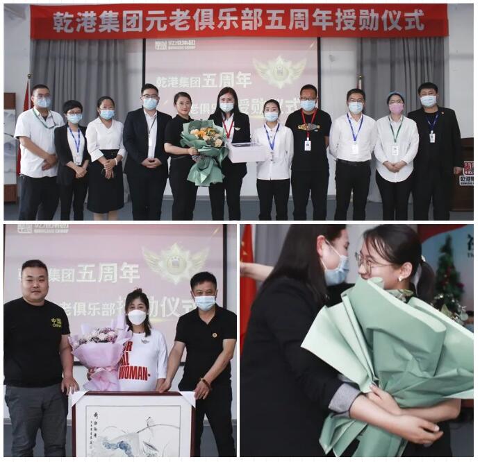 2020年5月28日,乾港集團(tuán)元老俱樂部五周年授勛儀式隆重召開,乾港集團(tuán)對3位工齡超過5年以上的老員工授予榮譽勛章,感謝元老們在乾港集團(tuán)發(fā)展中做出的貢獻(xiàn)。